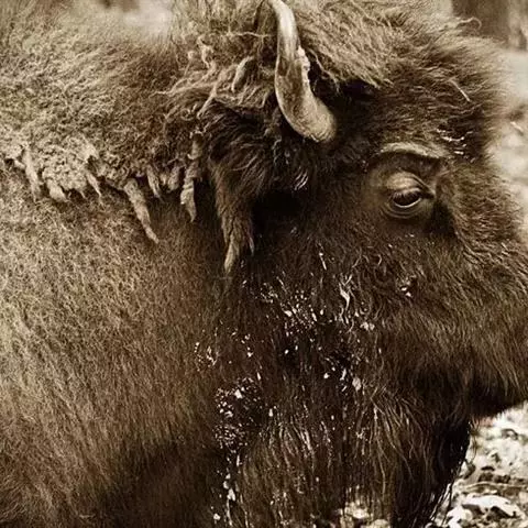 美洲野牛从史前时代开始就生活在北美大地,是北美最大的陆地动物,成年公牛可达1.8米高,体重将近一吨。起初,数千万头野牛在这片土地上繁衍生息。它们与北美印第安人的生活息息相关,身体的各部分被用作食物、衣物、工具、建筑材料;它们还被印第安部落作为图腾。