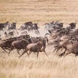 角马属,是偶蹄目牛科下的一属。角马属共有两种,即斑纹角马,白尾角马。…