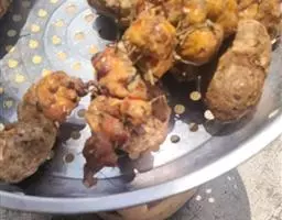 是将羊肉、鸡肉、牛肉或猪肉,切成一小块串在竹签上放在开放式的炭烤架上烘烤,沾上甜酱或香辣花生调味料,清淡爽口又营养。