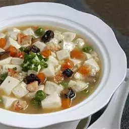 过桥豆腐是一道传统名肴,属于湘菜系。此菜柔滑细嫩,咸鲜适口,菜相美观,勾芡后,用小勺舀上一勺送入口中,…