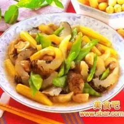 2、炒锅注油烧热,下入葱,姜末爆锅,放入木耳煸炒数下,加入鲜汤、盐、烧开后,用水淀粉勾芡,撒上火腿丁,翻匀,出锅即成。