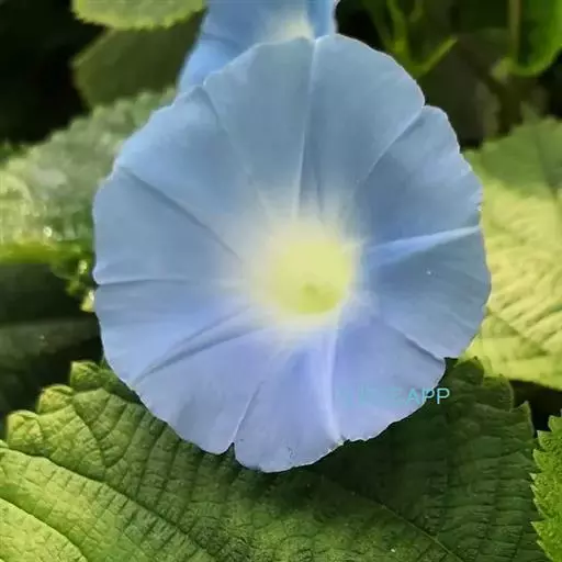 大花牵牛,叶大柄长,具三裂,中央裂片较大,叶易长具不规则的黄白斑块。花1~3朵腋生,总梗短于叶柄,花大型,花径可达10厘米或更大,原产亚洲和非洲热带。本种在日本栽培最盛,称朝颜花,并选育出众多园艺品种,花型变化多样,花色丰富多彩,各地广为流行。