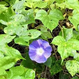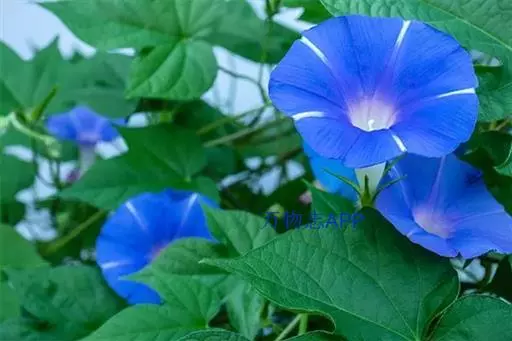 圆叶牵牛,叶阔心脏形,全缘,花型小,有白、玫红、莹蓝等色。