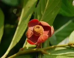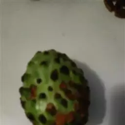 毛叶番荔枝(Annona cherimolia Mill.)番荔枝科落叶小乔木,高4-5米;枝条被短柔毛。叶薄纸质,卵圆形、少数为椭圆形,顶端钝或短渐尖,基部圆形,叶面被短柔毛,叶背被短绒毛。花单生或2-3朵与叶对生;总花梗被茸毛;外轮花瓣长圆状线形,外面绿黄色或红色,被短柔毛,内面浅黄色或带白色,基部有紫色斑点,内轮花瓣鳞片状,肉红色或紫色。果实圆锥状或心脏形,有时圆球状或卵圆状,果皮有各式凹凸状;果肉白色,与种子易于分离,味甜酸;种子倒卵形,略扁,顶端斜截形。