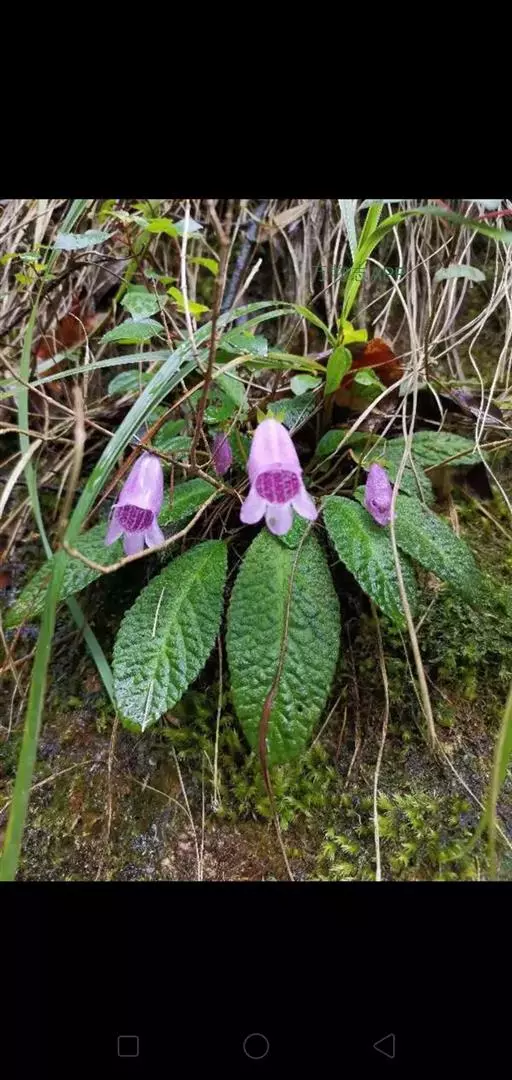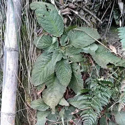 多年生草本。叶全部基生,有柄;叶片椭圆状长圆形或狭椭圆形,长4-10厘米,宽2-5.2厘米,顶端钝,基部宽楔形,稍不对称,边缘有锯齿,上面密被灰白色贴伏短柔毛,下面沿叶脉密被锈色绵毛,其余部分疏生灰白色贴伏短柔毛,侧脉在下面隆起;叶柄长1.2-4厘米,被锈色绵毛。聚伞花序2次分枝,1-2(-3)条,每花序具1-5花;花序梗长11-17厘米,疏生锈色绵毛;苞片2,狭倒卵形至线状披针形,长8-10毫米,宽3-5毫米,顶端锐尖,近顶具2-3齿或近全缘,外面上部疏生柔毛,下面密被锈色绵毛。萼长8-10毫米,5裂至基部,有时裂至中部,裂片卵状长圆形,宽3-4毫米,顶端渐尖,具3-4齿或近全缘,外面密被锈色绵毛,内面近无毛。花冠紫红色,长3.5-4.2厘米,外面疏生短柔毛,内面具紫色斑点,下方肿胀;筒长2.8-3厘米,直径1.7-1.9厘米;上唇2深裂,裂片圆形,长约5毫米,宽4毫米,顶端圆形,下唇3裂至中部,裂片长圆形,长7毫米,宽5毫米,顶端圆形。上雄蕊长约1.6厘米,着生于距花冠基部4毫米处,下雄蕊长1.2厘米,着生于距花冠基部6毫米处,花丝线形,被微柔毛至近无毛,花药肾形,长1.2毫米,顶端不汇合;退化雄蕊长3毫米,着生于距花冠基部3毫米处。花盘环状,高约3毫米,直径约3-4毫米。雌蕊长1.4厘米,子房狭线形,长约9毫米,无毛,花柱短,长约2毫米,被微柔毛,柱头2。蒴果倒披针形,长5.5-6厘米,直径4-7毫米,无毛,顶端具短尖头。花期9月,果期10月。