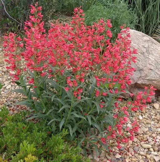 玄参科钓钟柳属,多年生草本,株高达90cm。单叶,对生或基生,披针形、线形,全缘,光滑或有毛。总状花序,亮红色,小花长2.5cm;花冠二唇裂,下唇反卷有毛;上唇突出;雄蕊5枚,雌蕊1枚;花期夏季,蒴果秋季成熟。有粉花及红花栽培品种。