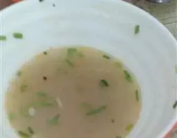 4.准备一个大碗,放少许葱花、盐、鸡精、香油,把汤盛进去就可以了,大功告成,香气扑鼻的萝卜大骨汤就做好了!