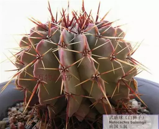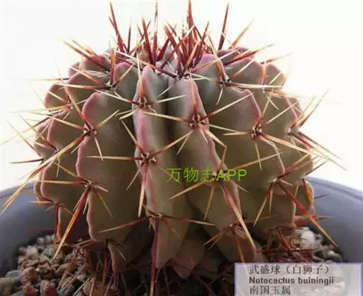 江守玉为仙人掌科强刺球属,植株扁圆形至球形,后成圆柱状,体色灰绿,刺座上附生白色绒毛,花橙黄色,漏…