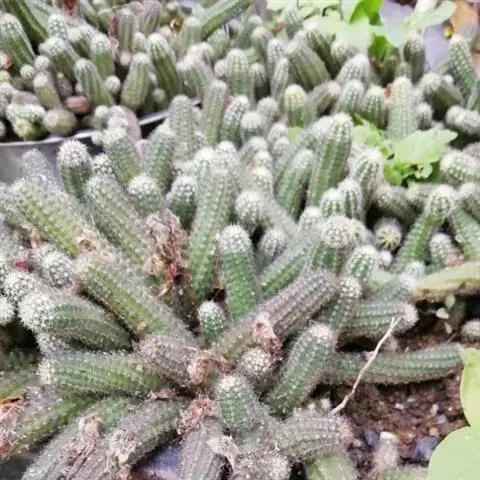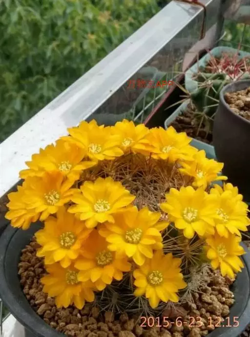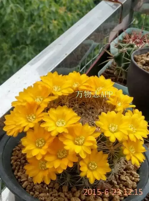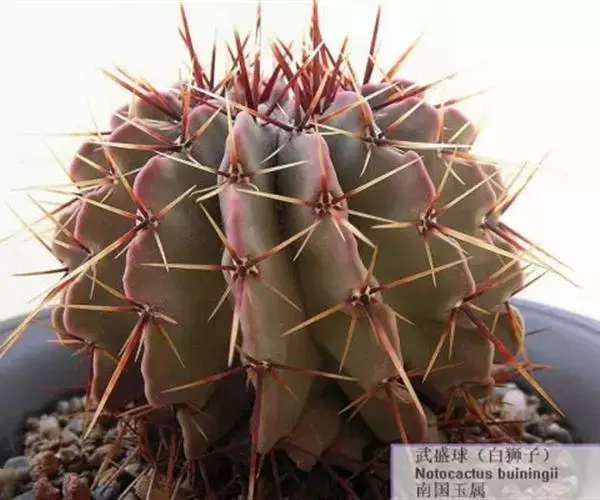 外观:此品种外观变化多样,通常为单株球状至短柱状 根:束状须根,无块根 刺:硬刺,基部为白色,至末端逐渐成为黑色,中刺2~8,边刺数目5~24支不定 疣粒:约有16~18盾状疣粒 花:花瓣黄色,与其他Rebutia属品种比较起来,此品的开花位置比较靠近生长点些,花季可由春季开至秋季