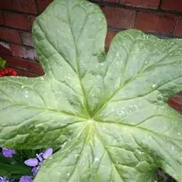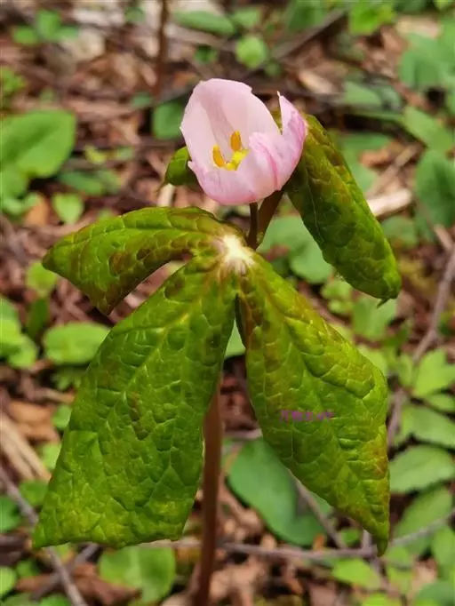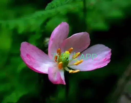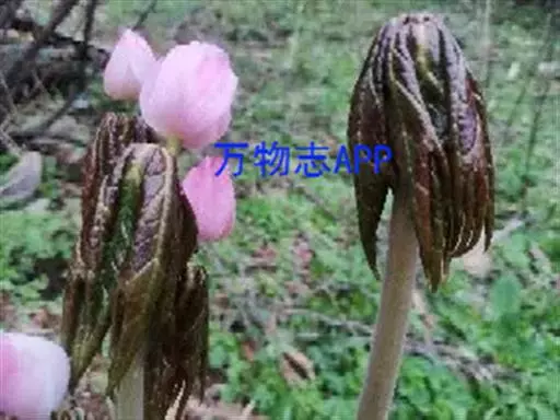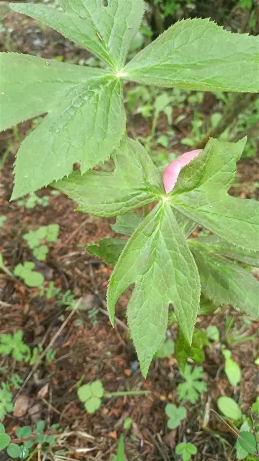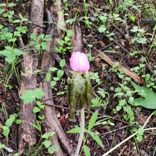 多年生草本,植株高20-50厘米。根状茎粗短,节状,多须根;茎直立,单生,具纵棱,无毛,基部被褐色大鳞片。叶2枚,薄纸质,非盾状,基部心形,3-5深裂几达中部,裂片不裂或有时2-3小裂,裂片先端急尖或渐尖,上面无毛,背面被柔毛,边缘具粗锯齿;叶柄长10-25厘米,具纵棱,无毛。花大,单生,先叶开放,两性,整齐,粉红色;萼片6,早萎;花瓣6,倒卵形或倒卵状长圆形,长2.5-3.5厘米,宽1.5-1.8厘米,先端略呈波状;雄蕊6,长约1.5厘米,花丝较花药稍短,花药线形,纵裂,先端圆钝,药隔不延伸;雌蕊1,长约1.2厘米,子房椭圆形,1室,侧膜胎座,含多数胚珠,花柱短,柱头头状。浆果卵圆形,长4-7厘米,直径2.5-4厘米,熟时桔红色;种子卵状三角形,红褐色,无肉质假种皮。花期5-6月,果期7-9月。