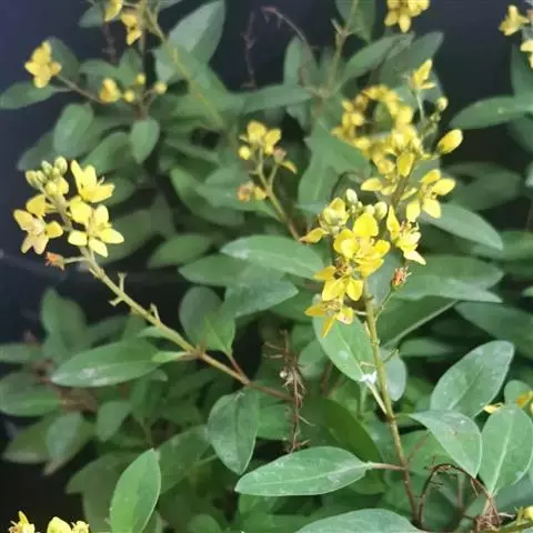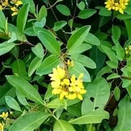 金英常绿灌木,株高约50-160厘米,嫩茎红色。叶片绿色,对生,椭圆形,先端尖,基部楔形,全缘。…