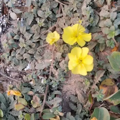 海边月见草,别名:海芙蓉,拉丁文名:Oenothera drummondii Hook.,是桃金娘目、柳叶菜科、月见草属直立或平铺一年生至多年生草本,具径不过1厘米的主根;茎长20-50厘米,不分枝或分枝,被白色或带紫色的曲柔毛与长柔毛,有时在上部有腺毛。基生叶灰绿色,狭倒披针形至椭圆形,先端锐尖,基部渐狭或骤狭至叶柄,边缘疏生浅齿至全缘,两面被白色或紫色的曲柔毛与长柔毛;花蕾锥状披针形或狭卵形,开放前向上曲伸,密被曲柔毛与长柔毛,常混生腺毛;萼片绿色或黄绿色,开放时边缘带红色,披针形,蒴果圆柱状,毛被同子房上的。种子椭圆状,褐色,表面具整齐洼点。花期5-8月,果期8-11月。