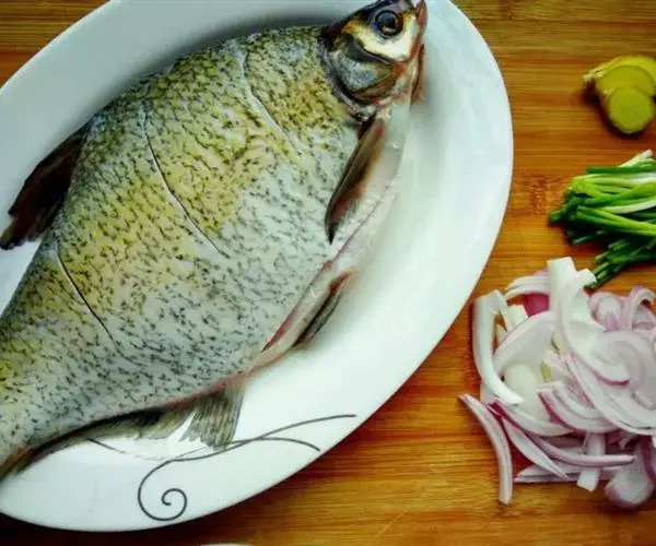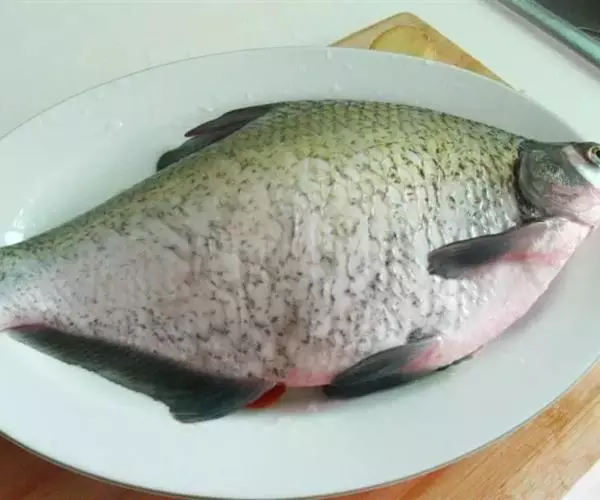 原料:鲜团头鲂一尾(约重一斤),肥膘猪肉一两,猪油一两半,白糖半两,酱油一两,精盐半钱,姜末三钱,水发玉兰片一两,味精半钱,料酒三钱,红辣椒半两,小葱半两,芝麻油二斤(约耗一两)。