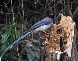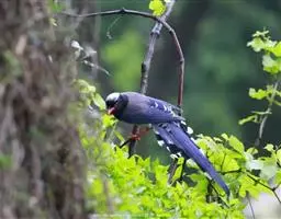 黑额树鹊是雀形目、鸦科的鸟类,体长约38厘米。黑色的尾甚长,上背、背、下腹及尾覆羽棕色。…