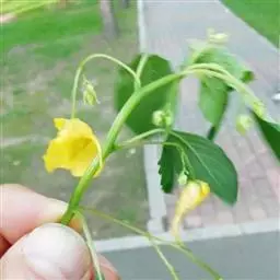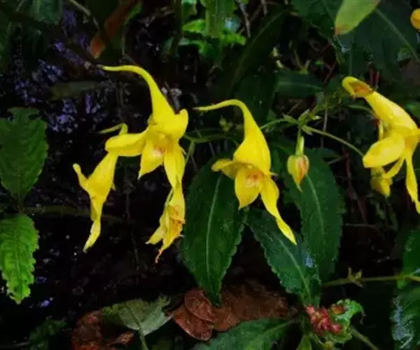 黄金凤(学名:Impatiens siculifer Hook. f.),凤仙花科,凤仙花属一年生草本植物,高可达60厘米。茎细弱,叶互生,卵状披针形或椭圆状披针形,总花梗生于上部叶腋,总状花序,花梗纤细,花黄色;侧生萼片窄矩圆形,旗瓣近圆形,花药钝。蒴果棒状。