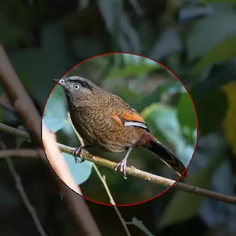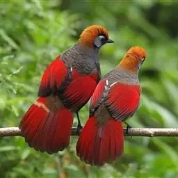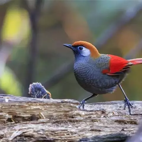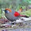 赤尾噪鹛中型鸟类,体长24~28厘米。头顶至后颈红棕色,两翅和尾鲜红色,眼先、眉纹、颊、颏和喉黑色,…