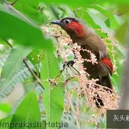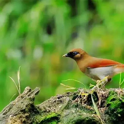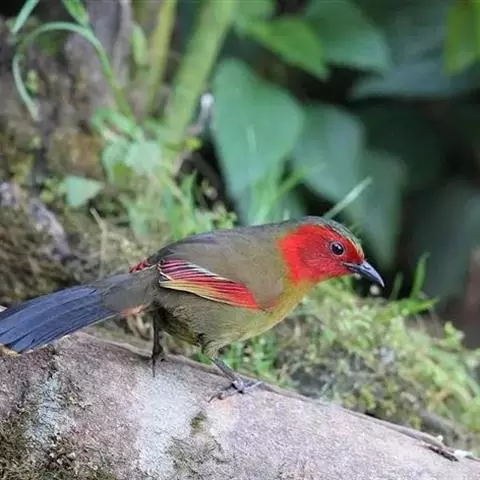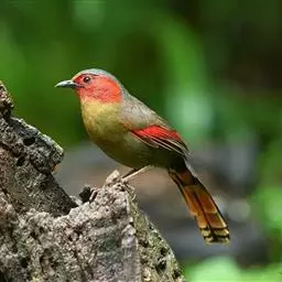 红翅薮鹛是噪眉科、薮鹛属中型鸟类,体长21-24厘米。头顶灰褐色,头侧和颈侧赤红色,上体橄榄褐色,…