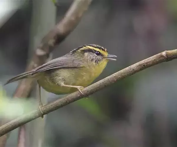 黄喉雀鹛(学名:Schoeniparus cinereus)是雀眉科、拟希鹛属小型鸟类,体长11-12厘米。头顶浅黄色具黑色鳞状斑,头顶两侧各有一道黑色侧冠纹,眉纹浅黄色、长而宽阔。上体灰绿色,两翅和尾褐色而具浅黄色窄缘。下体淡黄色。特征明显,特别是长而宽阔的黑色侧冠纹和浅黄色眉纹极为醒目,野外很容易认识。虹膜褐色或红褐色,嘴角色或暗角褐色,下嘴带灰色。脚红褐色、肉色或肉黄色。
