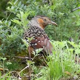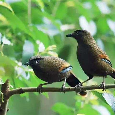 大噪鹛:中型鸟类,体长32-36厘米。额至头顶黑褐色,背栗褐色满杂以白色斑点,…