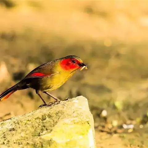 红头穗鹛是雀形目画眉科伪穗鹛属鸟类。成鸟额至头顶或至枕部为棕红色;额基和眼先淡灰黄色;眼圈隐隐泛黄白色;颊和耳羽灰黄色缀有橄榄褐色;其余上体连同翼和尾的表面为橄榄绿褐色;飞羽和尾羽暗褐色,外缘沾茶黄色;下体颏、喉和胸浅灰黄色,具细黑羽干纹;腹和尾下覆羽橄榄褐绿色;腋羽和翼下覆羽淡灰黄色;虹膜棕红色;上喙角褐色,下喙暗黄色;脚黄褐色。红头穗鹛分布于亚洲东南部地区;在中国分布于秦岭及以南的广大地区,包括长江流域、华南、华中和西南地区。栖息于山地森林中。常单独或成对活动,有时也结小群或与棕颈钩嘴鹛等其他鸟类混群,在林下灌丛间来回跳跃穿梭。主食鞘翅目、鳞翅目、直翅目、膜翅目、双翅目和半翅目等昆虫,偶食少量植物种实。繁殖期在4-7月,营巢于茂密灌草丛或竹丛中。窝卵数4-5枚,卵白色且具棕斑,雏鸟晚成;雌雄亲鸟轮流孵卵,共同育雏。红头穗鹛为食虫益鸟,被列入中国林业局2000年8月1日发布的《国家保护的