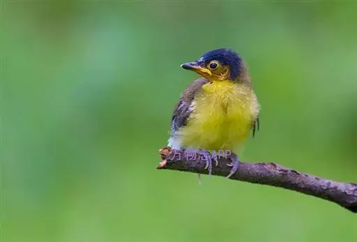 雌雄羽色相似。额、头顶至枕浅黄色或灰绿色,各羽均具黑色羽缘在头顶形成黑色鳞状斑或浅黄色纵纹。头顶两侧各有一条宽的黑色侧冠纹,从额基一直延伸到后颈,其终端在上背形成若干黑色纵纹。在黑色侧冠纹下面有一条长而宽阔的淡黄色眉纹,从嘴基一直到后枕侧。贯眼纹黑色、颊淡黄色,羽端缀黑色,耳覆羽呈黑色与灰色或黑色与灰黄色相杂状。上体灰橄榄绿色,两翅和尾亦为灰橄榄绿色,羽缘浅黄色。颏、喉和其余下体淡黄色,颈侧和两胁缀橄榄色。