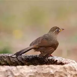 玉山噪鹛中等体型的褐色鸟类。白色长眉纹及髭纹显著;顶冠灰而具白色的鳞状斑纹;脸侧及颏褐色,…