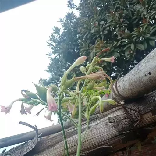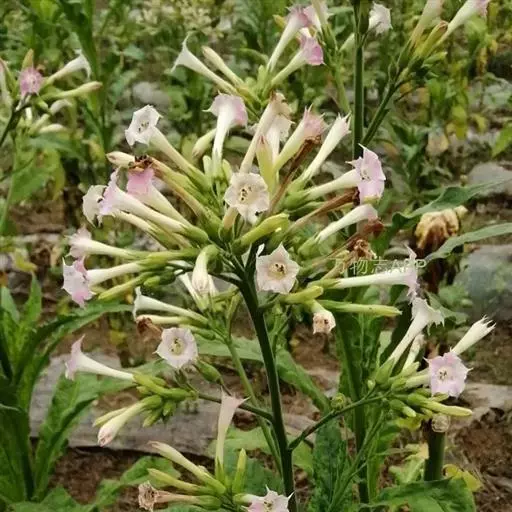 烟草(学名:Nicotiana tabacum L.)是茄科烟草属植物,一年生或有限多年生草本,全体被腺毛;根粗壮。茎高0.7-2米,基部稍木质化。叶矩圆状披针形、披针形、矩圆形或卵形,顶端渐尖,基部渐狭至茎成耳状而半抱茎。花序顶生,圆锥状,多花;花梗长5-20毫米。蒴果卵状或矩圆状,长约等于宿存萼。种子圆形或宽矩圆形,径约0.5毫米,褐色。夏秋季开花结果。
