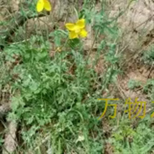 花1-5朵于茎和分枝先端排列成聚伞花序;花梗长2-2.5厘米,无毛;具苞片。花芽宽卵形,长约1厘米;萼片卵形.长0.6-1厘米,先端渐尖成距,距末明显扩大成匙形,无毛或被短柔毛;花瓣倒卵形至回形,长1-1.6厘米,宽1-1.3厘米,黄色;雄蕊多数,花丝丝状,长3-4毫米,花药长圆形,长1.5-2毫米,黄色;子房狭圆柱形,长约6毫米.绿色,密被疣状短毛,花柱短,柱头2裂,直立。蒴果线形,长4-7.5厘米,粗约2毫米,绿色,无毛,2瓣自顶端开裂至近基部。种子卵珠形,长约0.5毫米,红棕色,具网纹。花期3-5月,果期6-7月。