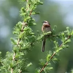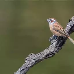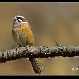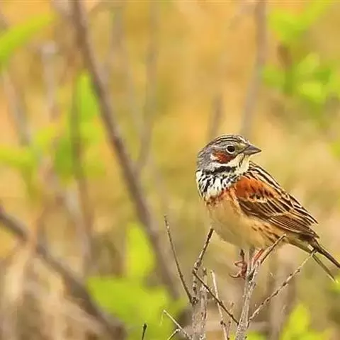 栗斑腹鹀:属小型鸣禽。体重19-25克,体长145-167毫米。头顶至背栗红色,眼先和颧纹黑褐色,…