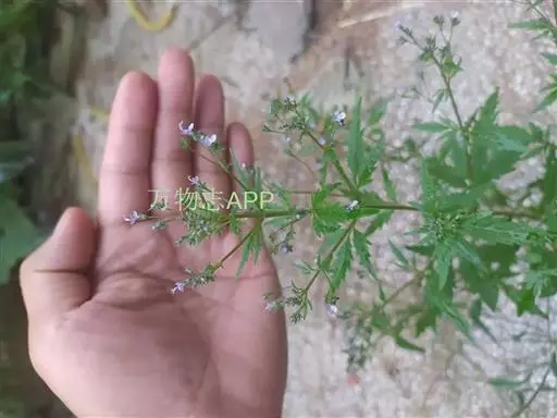 一年生草本,基部有时木质化,高0.3-1米,呈金字塔形分枝。茎四棱形,紫色,灰紫黑色或紫绿色,被疏柔毛或微柔毛,以节上较多。叶柄长0.7-2厘米,紫色或紫绿色,有沟,具狭翅,被疏长硬毛;叶片纸质或近膜质,三角形或近卵形,3深裂,稀不裂或5裂,裂片披针形,边缘具粗锯齿或重锯齿,中间的裂片长2.5-4.7厘米,宽0.8-1.5厘米,无柄,两侧的裂片长2-3.5厘米,宽0.7-1.2厘米,无柄或几无柄,基部不对称,下延,叶片上面绿色或紫绿色,被疏微柔毛或几无毛,下面略淡,无毛,中肋隆起,明显。花序为由松散具长梗的聚伞花序所组成的圆锥花序;苞叶与茎叶同形,变小;小苞片微小,线形,长约1毫米,具缘毛;花梗短,长1-2.5毫米,与总梗被疏腺毛。花萼钟形,长约2毫米,外面被乳头状突起及腺毛,内而无毛,具10脉,其中5肋明显隆起,中间脉不明显,萼齿5,近整齐,三角形,渐尖,长约1毫米或略短,边缘具缘毛;果时花萼增大。花冠蓝色或紫蓝色,冠筒内藏或略长于花萼,外面无毛,冠檐二唇形,外面被腺毛,上唇2裂,长圆状卵形或卵形,下唇略大,3裂,中裂片近圆形,侧裂片与上唇裂片近同形。雄蕊4,前对能育,着生于下唇基部,花芽时内卷,花时向后伸长,自上唇裂片间伸出,花丝细弱,无毛,伸出雄蕊约1/2,花药2室,室叉开,纵裂,成熟后贯通为1室,后对为退化雄蕊,着生于上唇基部,线形或几无。花柱细弱,略超出雄蕊,先端不相等2浅裂,前裂片细尖,后裂片短或不明显。花盘环状,具相等浅裂片。小坚果倒卵状三棱形,背面具网状皱纹,腹面具棱,两侧平滑,合生面大,高达果长1/2以上。花期8-9月,果期9-10月。
