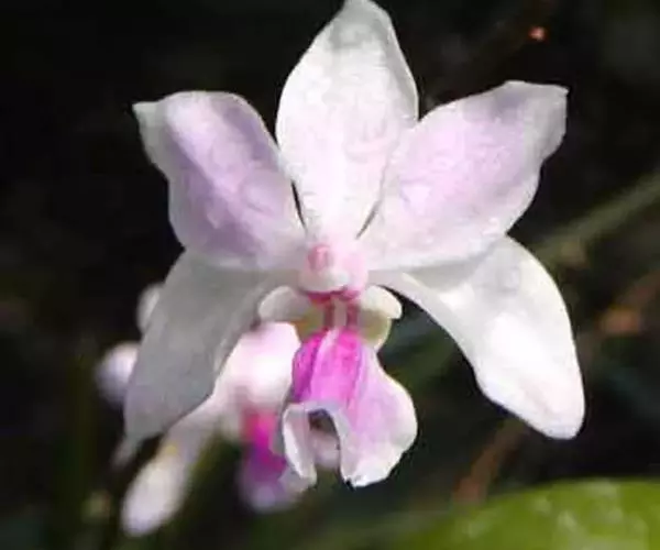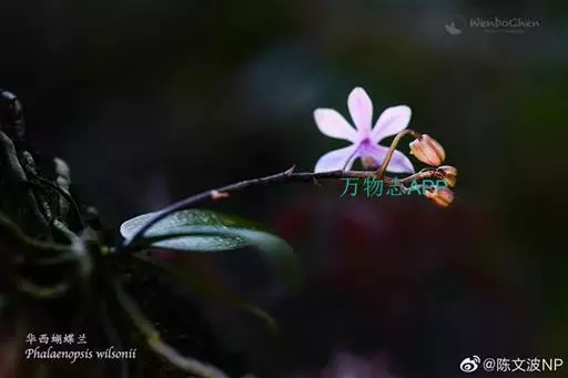 华西蝴蝶兰(拉丁学名:Phalaenopsis wilsonii Rolfe)又名小蝶兰、楚雄蝶兰。兰科,蝴蝶兰属附生草本植物,气生根长而弯曲,茎很短,叶稍肉质,长圆形或近椭圆形,花序柄暗紫色,花苞片膜质,萼片和花瓣白色带淡粉红色的中肋或全体淡粉红色;中萼片长圆状椭圆形,侧萼片与中萼片相似而等大,花瓣匙形或椭圆状倒卵形,蕊柱淡紫色,蒴果狭长,4-7月开花,8-9月结果。