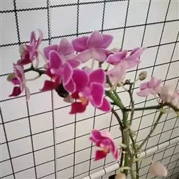 蝴蝶兰既可盆栽。也可吊养。盆栽可用素烧盆、瓷盆、塑料盆或蛇木盆,而吊养则可用蛇木板、蛇木柱、木块、树段等。盆栽中小苗可用水苔混合细蛇木屑栽培,也可用水苔或蛇木屑单独栽培。成株时可用蛇木屑、水苔、珍珠岩、蛭石、泥炭土、木炭、碎砖块等加以混合使用。若基质腐烂或表面长青苔,则需及时换盆。上盆种植时,盆底要用较粗大的基质铺垫,用量可达基质总量的50%左右。吊盆栽培时,不宜选择过于坚硬的材料,而且时间过长基质也会腐烂,同样需要及时更换。