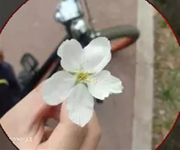 花序伞形总状,总梗极短,有花3-4朵,先叶开放,花直径3-3.5厘米;总苞片褐色,椭圆卵形,长6-7毫米,宽4-5毫米,两面被疏柔毛;苞片褐色,匙状长圆形,长约5毫米,宽2-3毫米,边有腺体;花梗长2-2.5厘米,被短柔毛;萼筒管状,长7-8毫米,宽约3毫米,被疏柔毛;萼片三角状长卵形,长约5毫米,先端渐尖,边有腺齿;花瓣白色或粉红色,椭圆卵形,先端下凹,全缘二裂;雄蕊约32枚,短于花瓣;花柱基部有疏柔毛。