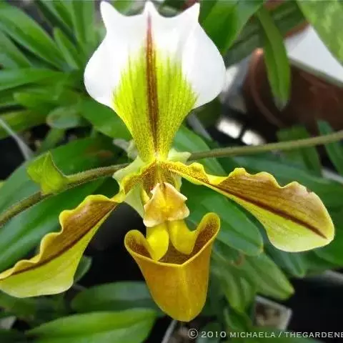 兜兰花比较雅致,色彩比较庄重,色及带有不规则斑点或条纹。花瓣较厚,花朵开放期比较长。属观赏类花草。
