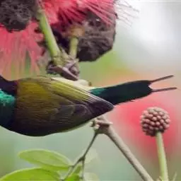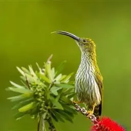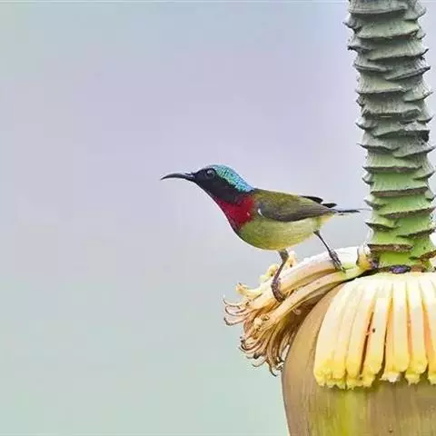 纹背捕蛛鸟:为太阳鸟科捕蛛鸟属的鸟类。是太阳鸟科中体型较大的一种,体重25-45克,…