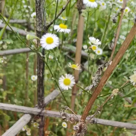 小蓬草(学名:Conyza Canadensis L.)别名:小白酒草、加拿大蓬飞草、小飞蓬、飞蓬,菊科,一年生草本。嫩茎、叶可作猪饲料;全草入药消炎止血、祛风湿,治血尿、水肿、肝炎、胆囊炎、小儿头疮等症。据国外文献记载,北美洲用作治痢疾、腹泻、创伤以及驱蠕虫;中部欧洲,常用新鲜的植株作止血药,但其液汁和捣碎的叶有刺激皮肤的作用,原产于北美洲,现在各地广泛分布。 我国各地均有分布,是我国分布最广的入侵物种之一。该种能产生大量瘦果。借冠毛随风扩散,蔓延极快,对秋收作物、果园和茶园危害严重,为一种常见的杂草。通过分泌化感物质抑制邻近其他植物的生长。小蓬草还是棉铃虫和棉蝽象的中间寄主。全草可治肠炎、痢疾等。首次发现或引入的时间及地点:1860在山东烟台被发现。1886年分别在浙江宁波和湖北宜昌采到,1887年到达四川南溪 。