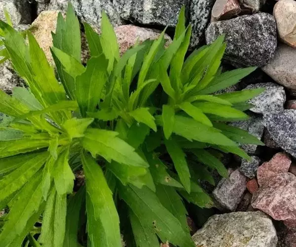 叶密集,基部叶花期常枯萎,下部叶倒披针形,长6-10厘米,宽1-1.5厘米,顶端尖或渐尖,基部渐狭成柄,边缘具疏锯齿或全缘,中部和上部叶较小,线状披针形或线形,近无柄或无柄,全缘或少有具1-2个齿,两面或仅上面被疏短毛边缘常被上弯的硬缘毛。