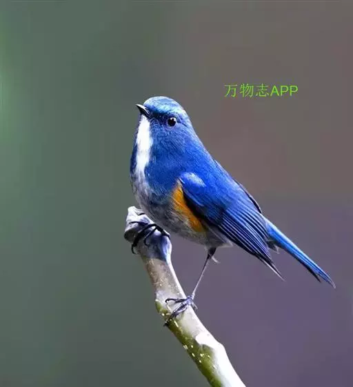 小型鸟类,体长13-15厘米。雄鸟上体从头顶至尾上覆羽包括两翅内侧覆羽表面概灰蓝色,头顶两侧、翅上小覆羽和尾上覆羽特别鲜亮呈辉蓝色。尾主要为黑褐色,中央一对尾羽具蓝色羽缘,外侧尾羽仅外翈羽缘稍沾蓝色,愈向外侧蓝色愈淡。翅上小覆羽和中覆羽辉蓝色,其余覆羽暗褐色,羽缘沾灰蓝色。飞羽暗褐色或黑褐色,最内侧二、三枚飞羽外翈沾蓝色,其余飞羽具暗棕或淡黄褐色狭缘。眉纹白色沾棕,自前额向后延伸至眼上方的前部转为蓝色,眼先、颊黑色,耳羽暗灰褐色或黑褐色、杂以淡褐色斑纹。下体颏、喉、胸棕白色,腹至尾下覆羽白色,胸侧灰蓝色,两胁橙红色或橙棕色。 雌鸟上体橄榄褐色,腰和尾上覆羽灰蓝色,尾黑褐色外表亦沾灰蓝色。前额、眼先、眼周淡棕色或棕白色,其余头侧橄榄褐色,耳羽杂有棕白色羽缘。下体和雄鸟相似,但胸沾橄榄褐色,胸侧无灰蓝色,其余似雄鸟。 虹膜褐色或暗褐色,嘴黑色,脚淡红褐色或淡紫褐色。 [2-3]