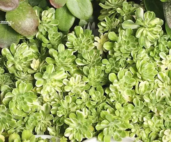 爱染锦(Aichryson × domesticum),别名黄笠姬锦、墨染,景天科莲花掌属多肉植物,原产地位于大西洋诸岛、北非和地中海沿岸,叶美,可观赏,亦可净化空气。