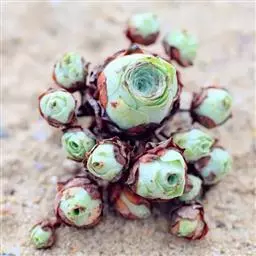 戴冠曲 景天科莲花掌属多肉植物,为亚灌木分枝多,叶片生长在茎端和分枝顶端集和成莲座叶盘,叶片倒卵…