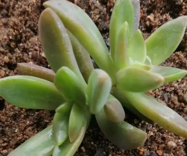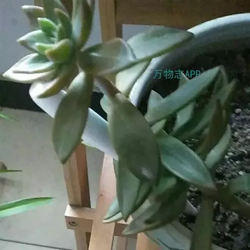 叶片呈覆瓦状互生,通常形状为披针形或倒卵形,长1.2-3.0厘米,先端锐利或稍尖,有花距。排列方式似龙骨状。非常肉质多汁。