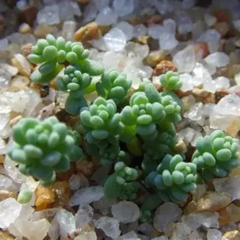 薄雪万年草别名矶小松,景天科景天属多年生草本植物,其细小的蓝绿色棒状叶片环绕生长于茎端,…