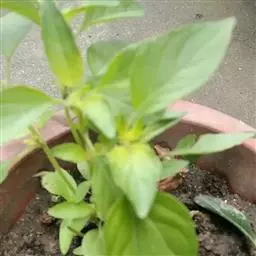 一年生草本,一年生草本。茎高0.3-1米,四棱形,多分枝,被灰白色疏短柔毛,茎下部的节及小枝基部通常微红色。叶通常为指状三裂,大小不等,长1-3.5厘米,宽1.5-2.5厘米,先端锐尖,基部楔状渐狭并下延至叶柄,裂片披针形,宽1.5-4毫米,中间的较大,两侧的较小,全缘,草质,上面暗橄榄绿色,被微柔毛,下面带灰绿色,被短柔毛,脉上及边缘较密,有腺点;叶柄长约2-10毫米。