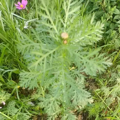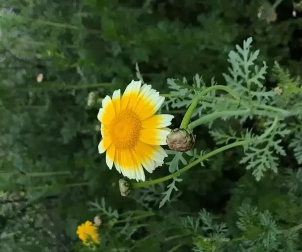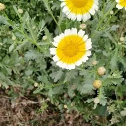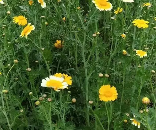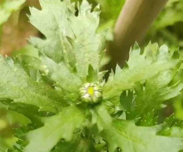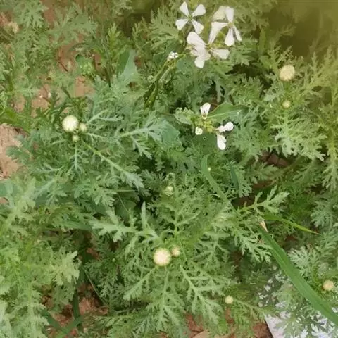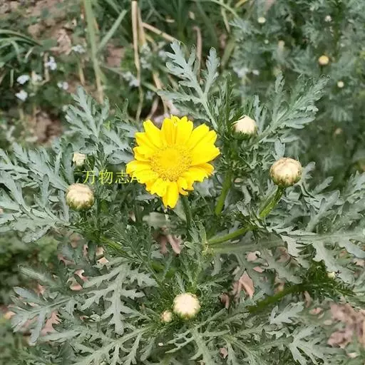菊科,一年生或二年生草本植物,叶互生,长形羽状分裂,花黄色或白色,与野菊花很像。瘦果棱,高二三尺,茎叶嫩时可食,亦可入药。