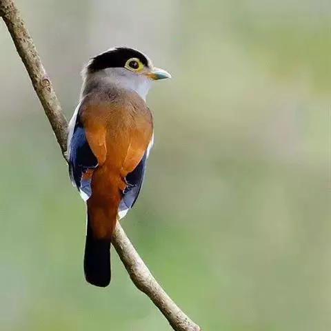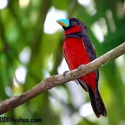 长尾阔嘴鸟是雀形目阔嘴鸟科的鸟类,体长约25厘米,是绿色阔嘴鸟。形长的楔形尾蓝色,喉及脸黄色,顶冠…