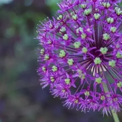 鳞茎常单生,卵状至狭卵状,或卵状柱形,粗0.7-2(-2.5)厘米;鳞茎外皮污黑色或黑褐色,纸质,顶端常破裂成纤维状,内皮有时带淡红色,膜质。叶三棱状条形,中空或基部中空,背面具1纵棱,呈龙骨状隆起,短于或略长于花葶,宽(1.5-)2-5毫米。花葶中生,圆柱状,中空,高30-70厘米,1/4-1/2被疏离的叶鞘;总苞单侧开裂或2裂,宿存;伞形花序球状,具多而极密集的花;小花梗近等长,比花被片长2-4倍,基部具小苞片;花红色至紫色;花被片椭圆形至卵状椭圆形,先端钝圆,长4-6毫米,宽2-3.5毫米,外轮舟状,较短;花丝等长,约为花被片长的1.5倍,锥形,无齿,仅基部合生并与花被片贴生;子房倒卵状球形,腹缝线基部具有帘的凹陷蜜穴;花柱伸出花被外。花果期8月底至10月。