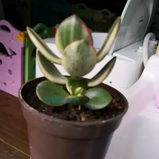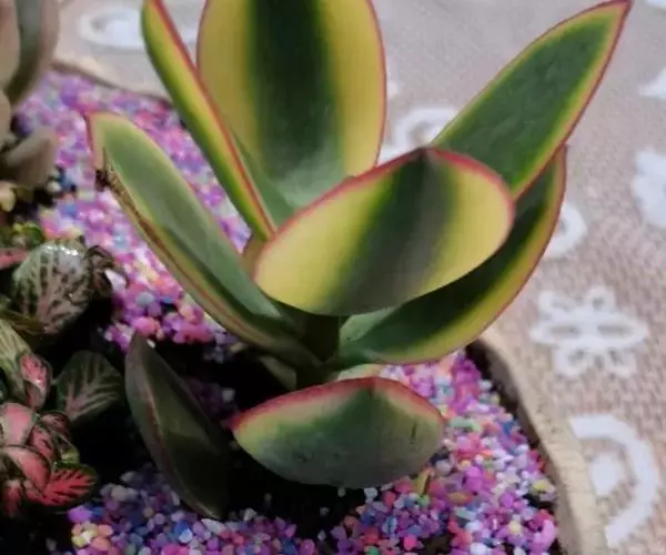 三色花月锦是景天科青锁龙属多肉植物,燕子掌的栽培品种,叶片有红、黄、白斑块,色彩斑斓。花期秋季。