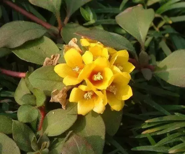 花2-4朵集生茎端和枝端成近头状的总状花序,在花序下方的1对叶腋有时具单生之花;花梗极短或长至2毫米;花萼长5-8.5毫米,分裂近达基部,裂片披针形,宽约1.5毫米,背面被疏柔毛;花冠黄色,内面基部紫红色,长9-11毫米,基部合生部分长2-3毫米,5裂(偶有6裂的),裂片卵状椭圆形至长圆形,宽3-6.5毫米,先端锐尖或钝,散生暗红色或变黑色的腺点;花丝下部合生成高约2.5毫米的筒,分离部分长2.5-4.5毫米;花药长圆形,长约1.5毫米;花粉粒近长球形(30-36)× (26.5-29)微米,表面具网状纹饰;子房被毛,花柱长5-7毫米。蒴果球形,直径3-4毫米。花期5-6月;果期7-10月。