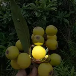 浆果球状,具宿存萼,直径约1.2厘米,黄褐色,初被星状簇绒毛,后渐脱落。种子扁平,直径约1-2毫米。几全年开花结果。