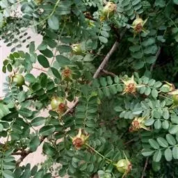 玫瑰:蔷薇科、蔷薇属的灌木;株高达2米;茎粗壮,丛生;小枝密生线毛,针刺和腺毛,有皮刺,淡黄色,…